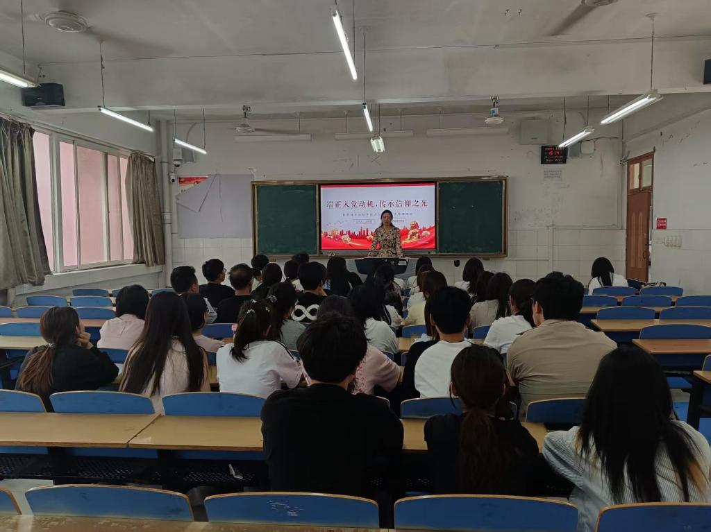 为进一步坚定入党积极分子的理想信念,提高入党积极分子思想觉悟,增强入党积极分子学习能力,发挥入党积极分子先锋模范作用。beats365官方网站(食品工程系)于5月9日举行第五十六期入党积极分子培训会,食品工程系党总支负责人王新娜以“端正入党动机,传承信仰之光”为题为全体入党积极分子讲授专题党课。