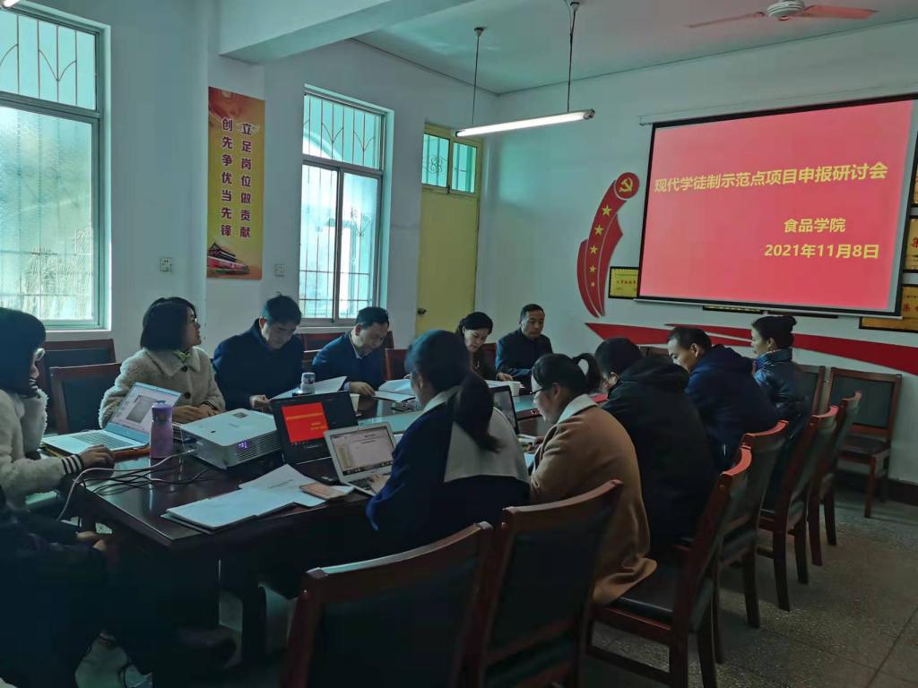 会上,漯河职院食品公司现代学徒制示范点项目负责同志对项目申报进度作了简要介绍。项目组成员分别就材料准备工作推进情况、预期成效与创新、目前存在的问题等多个方面进行了汇报。教务处负责同志就申报材料撰写、创新点提炼等方面提出了意见与建议。