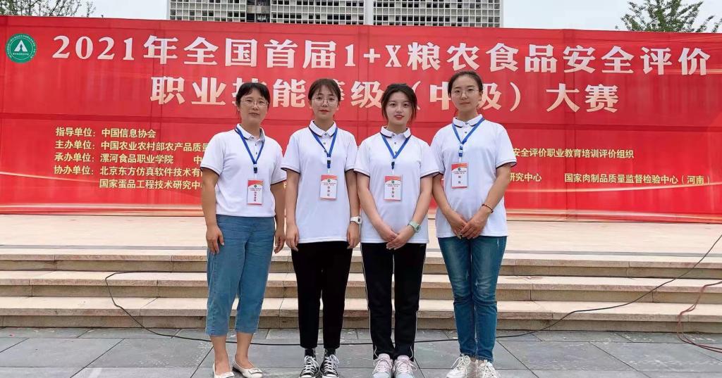 6月25日,食品工程系师生在漯河食品职业公司,参加2021 年“1+X”粮农食品安全评价职业技能大赛(中级),参与此次大赛的还有来自北京、广东、江苏、上海、黑龙江等的各大院校,共有选手五十余名。本次活动由中国信息协会指导,由农业农村部农产品质量监督检验测试中心(北京)、中国信息协会粮农信息分会、1+X粮农食品安全评价职业教育培训评价组织主办,漯河食品职业公司、中农粮信(北京)技术服务有限公司承办。