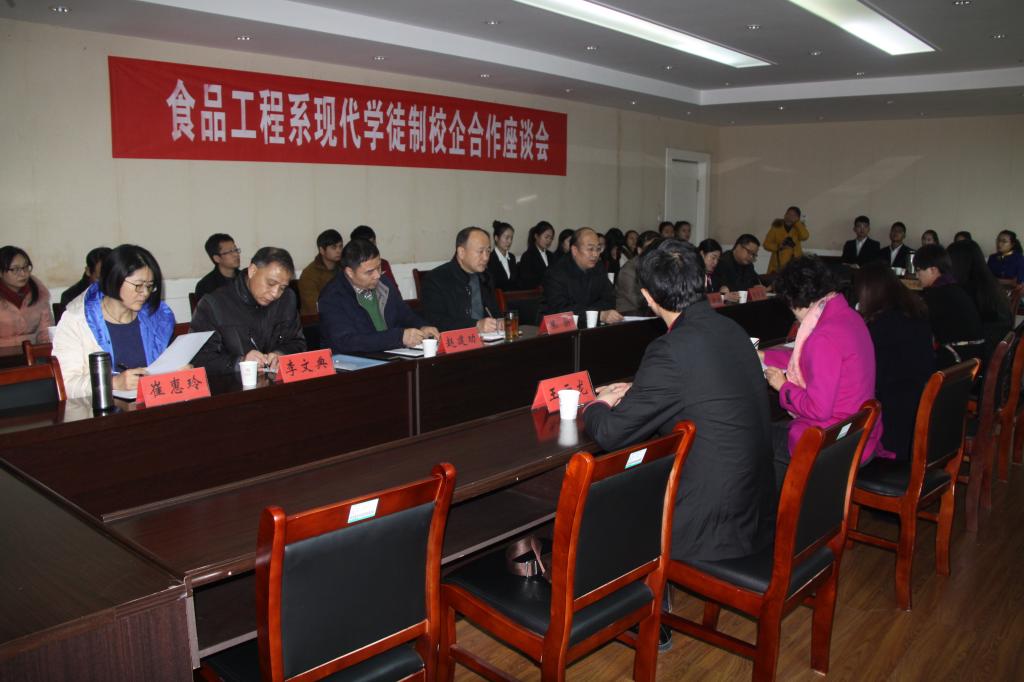 12月23日上午,食品工程系在公司第二会议室召开漯河职院(食品工程系)“深化校企合作 开展学徒制试点”座谈会,郑州市仟吉食品有限公司运营总监陈瑞华、招聘课长王云龙;思念集团千味央厨食品股份有限公司副总经理刘庆伟;天瑞集团天津分公司人力资源部经理苏玉霞、主管闻芳韵;公司党委委员、常务副经理吴玉堂、教务处处长贾新政、实训中心主任张勃、就业处处长潘玉尚、员工处处长程传蕊;督导室主任赵建功、食品工程系班子成员、学徒制项目组成员、学徒制班班主任和员工代表参加了会议,会议由食品工程系主任李文典主持。