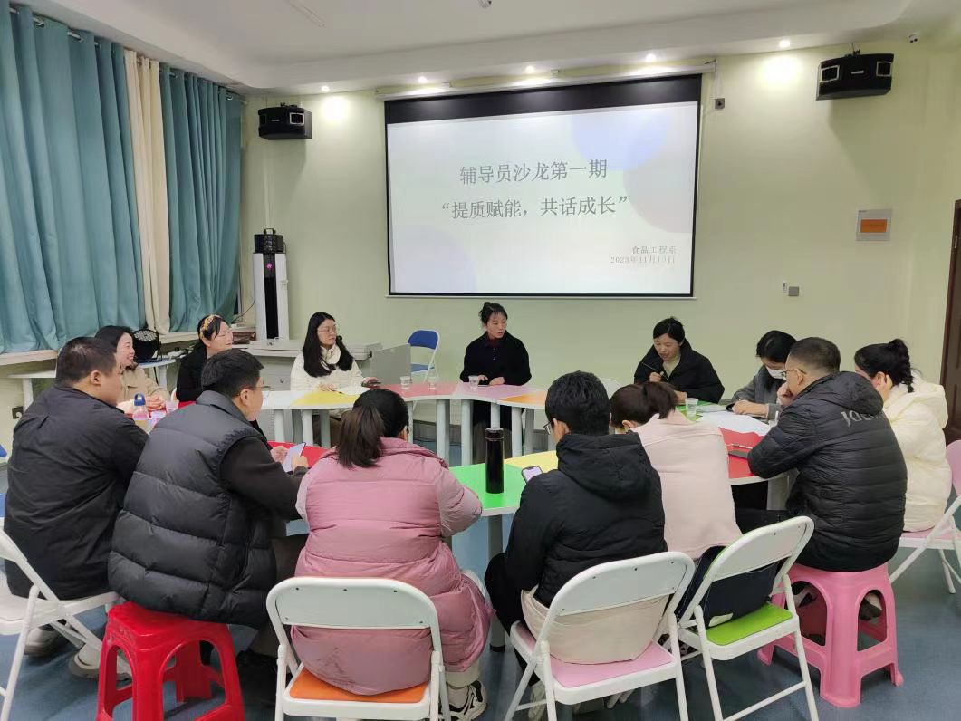 为加强辅导员队伍建设,提升辅导员心理育人专业素养和业务能力,11月13日下午,食品工程系在校心理健康中心团体室开展主题为“提质赋能,共话成长”的第一期辅导员沙龙活动,食品工程系党总支负责人王新娜、食品工程系团总支负责人侯鹏飞、校心理健康中心杨文杰老师、全体辅导员参加,沙龙由食品工程系员工管理负责人卢向飞主持。