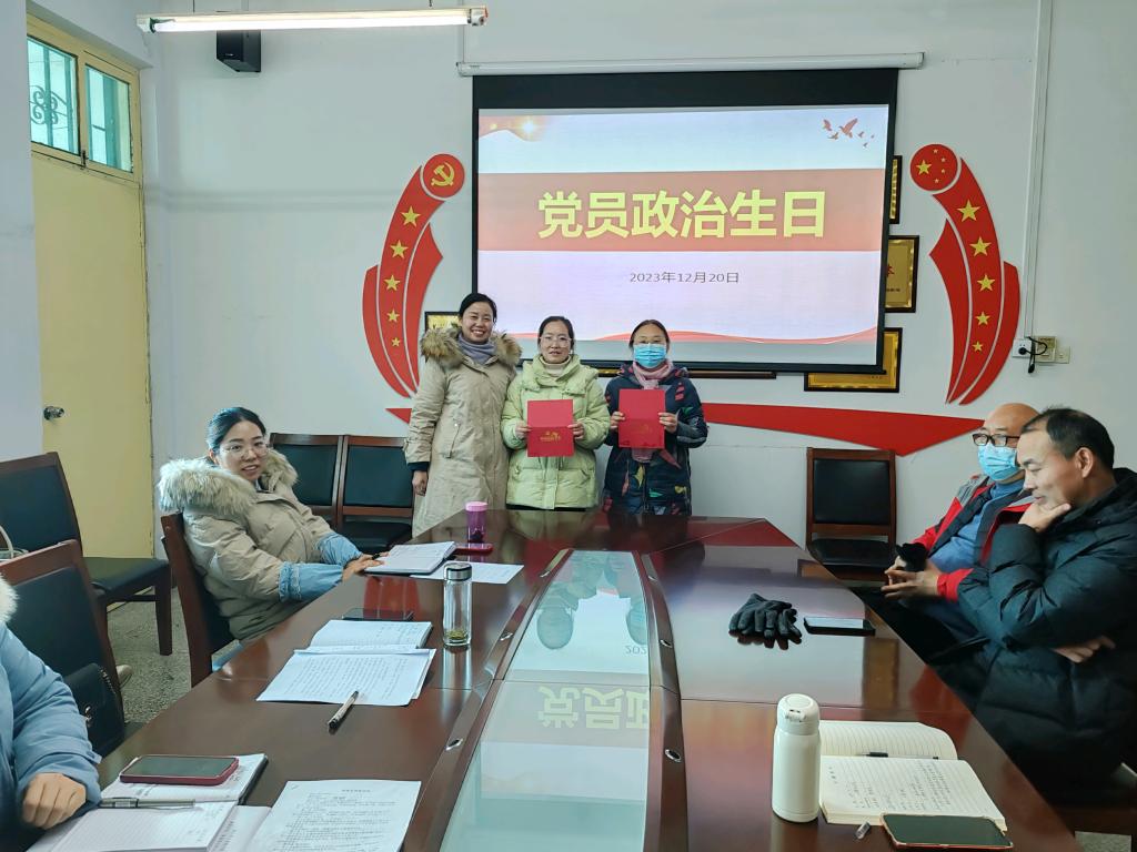 会议第五项,落实党员“政治生日”制度。支部为12月份入党的党员李轲、韩晓宇、吕广英过“政治生日”,唤醒党员身份意识,增强党员的组织归属感和身份荣誉感,时刻牢记初心使命,激发干事创业热情;充分体现党的关怀和温暖,不断增强基层党组织的组织力、凝聚力、战斗力。会议第六项,自觉缴纳党费。全体党员按照党费收缴标准,自觉足额缴纳12月份党费。