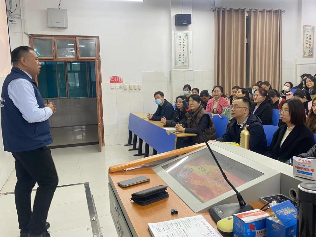 首先,科普宣传服务队黄亚南教员以消防安全知识讲座的形式,从鲜活的案例入手,引导全体师生建立消防安全意识,并对消防器材的配备和使用方法、防火灭火常识以及火场逃生等方面进行了生动的讲解。通过开展此次活动,绝大多数同学表示进一步提高了自身的消防安全意识,普及了消防安全知识。