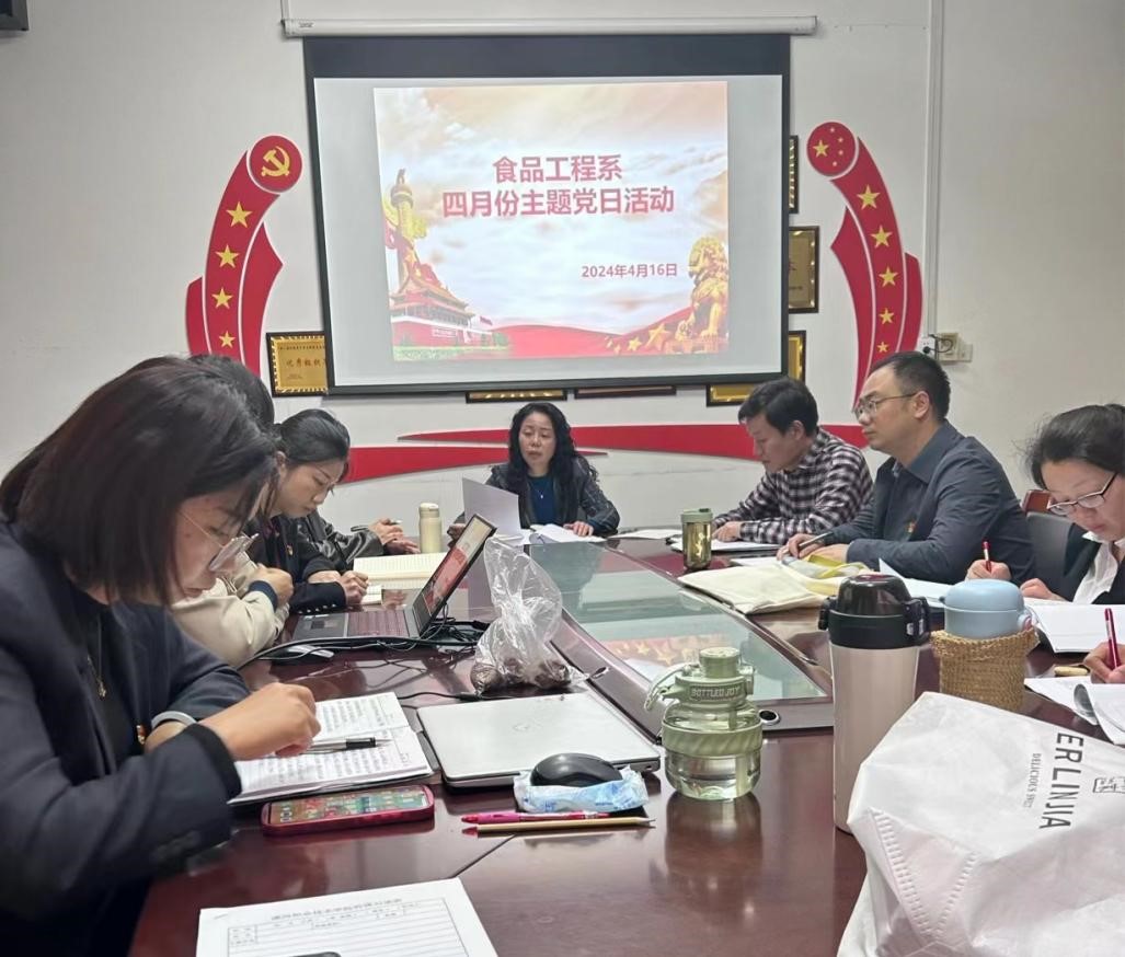 2024年4月17日,食品工程系教工党支部在系党员活动室开展4月份主题党日活动,本次活动由食品工程系党总支负责人王新娜主持,全体党员教师参加了此次活动。