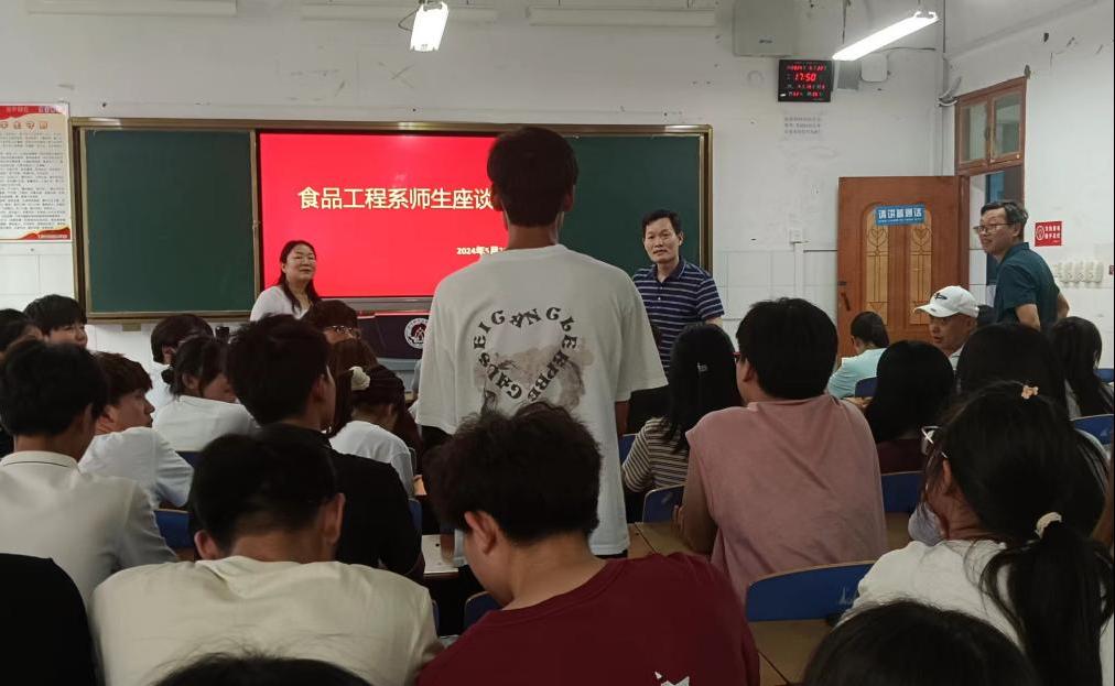 5月22日下午,食品工程系成功召开师生座谈会。此次会议由员工管理工作负责人卢向飞主持,系部全体领导班子成员、各教研室主任、全体辅导员以及各班员工代表共同出席。