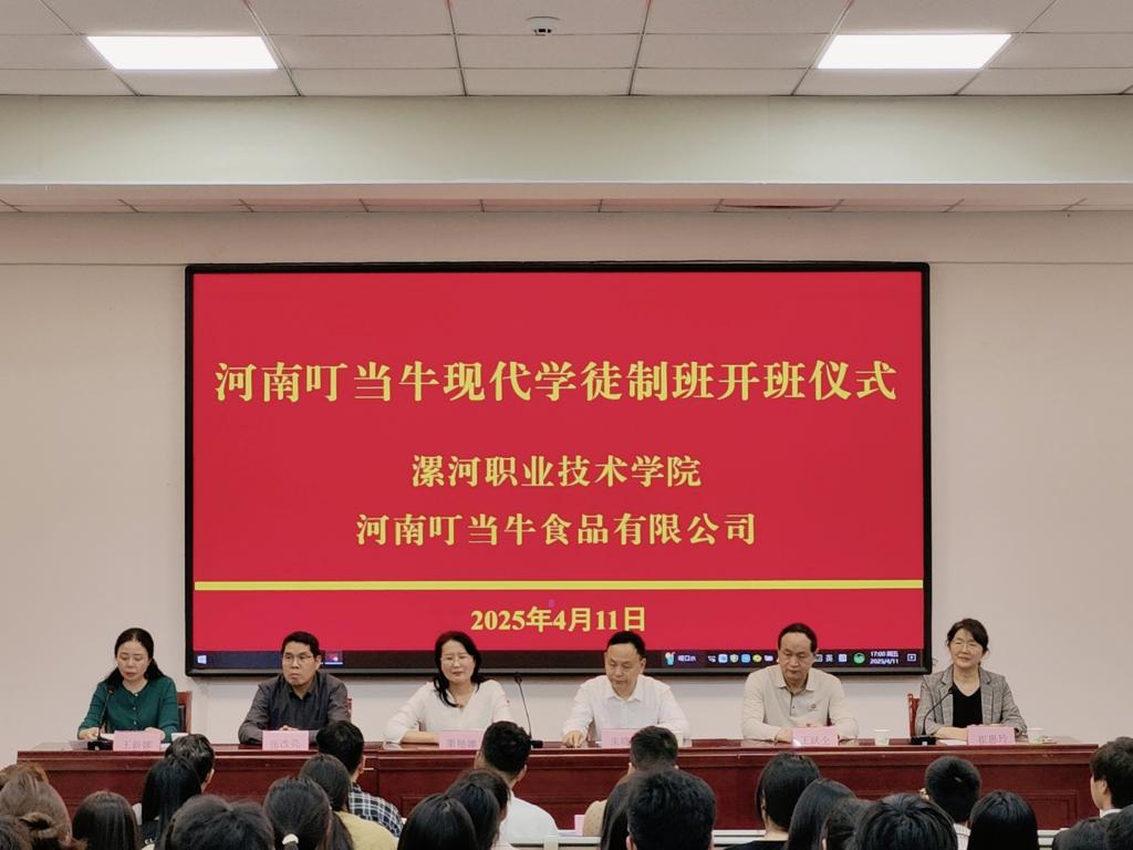 4月11日,河南叮当牛食品有限公司与beats365官方网站联合举办的“叮当牛现代学徒制班”开班仪式隆重举行,标志着校企双方在产教融合、协同育人领域迈入新阶段。叮当牛生产运营总监栗艳娜、技术总监王跃仝、品控经理陈鹏、人资经理张晓磊、研发工程师宗宝丰,beats365官方网站副经理朱晓红、发展规划处处长张改亮、食品工程系行政负责人崔惠玲、党总支负责人王新娜及师生代表共同出席。