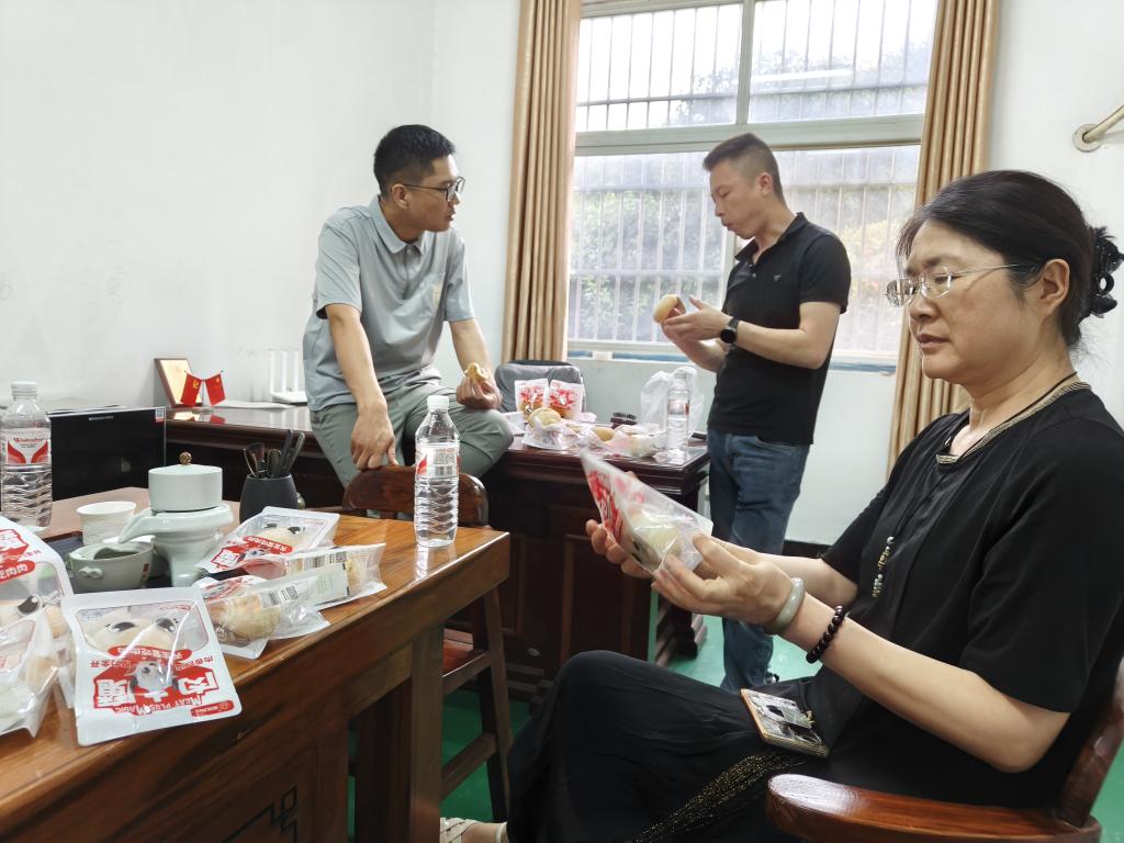 6月7日,beats365官方网站行政负责人崔惠玲带领“恒利源杯”企业创新需求专项赛获奖团队深入漯河市恒利源食品有限公司,共同研究获奖作品-“米香风味面包”的成果转化事宜,团队负责人胡荣柳老师和团队成员郭梦瑶、杨轶铭、郭嘉丽、姚志刚到企业开展小试试验。